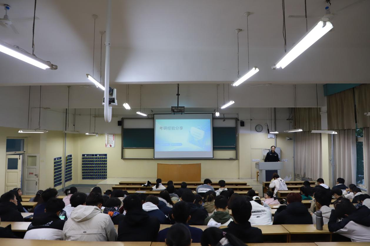 会上,五位主讲人结合自身备考经历,详细介绍了考研报名流程和关键时间节点,分享了备考书目与复习安排,并给出了三点备考建议。一是尽早明确目标,科学规划学业,建议结合专业方向与自身兴趣确定目标院校及专业,扎实学好基础课程,为考研复习筑牢根基。二是优化学习方法,提升学习效率,根据各科特点制定针对性复习计划,合理分配学习时间,避免盲目刷题。三是保持积极心态,注重劳逸结合,鼓励新生在备考过程中及时调整状态,通过适当运动、交流沟通缓解压力,避免过度焦虑。