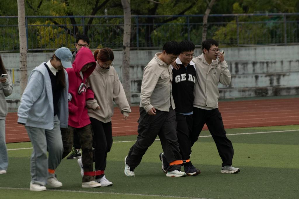 此次趣味运动会共包含“你划我猜”、“小型保龄球”、“三人四足”、“背夹球”、“抱团取暖”、“气球大战”六个比赛项目。现场气氛热烈,同学们全情投入。其中“三人四足”格外考验默契,队员们互相扶持、齐声喊号,尽管步伐受限仍协力向前,引得场边阵阵加油助威。“你划我猜”中比划者手脚并用、表情丰富,猜题者紧盯细节、心领神会,默契配合不时引发欢笑。压轴的“气球大战”更是将气氛推向高潮,快速躲闪与清脆爆破声交织,现场化作一片欢乐的海洋。