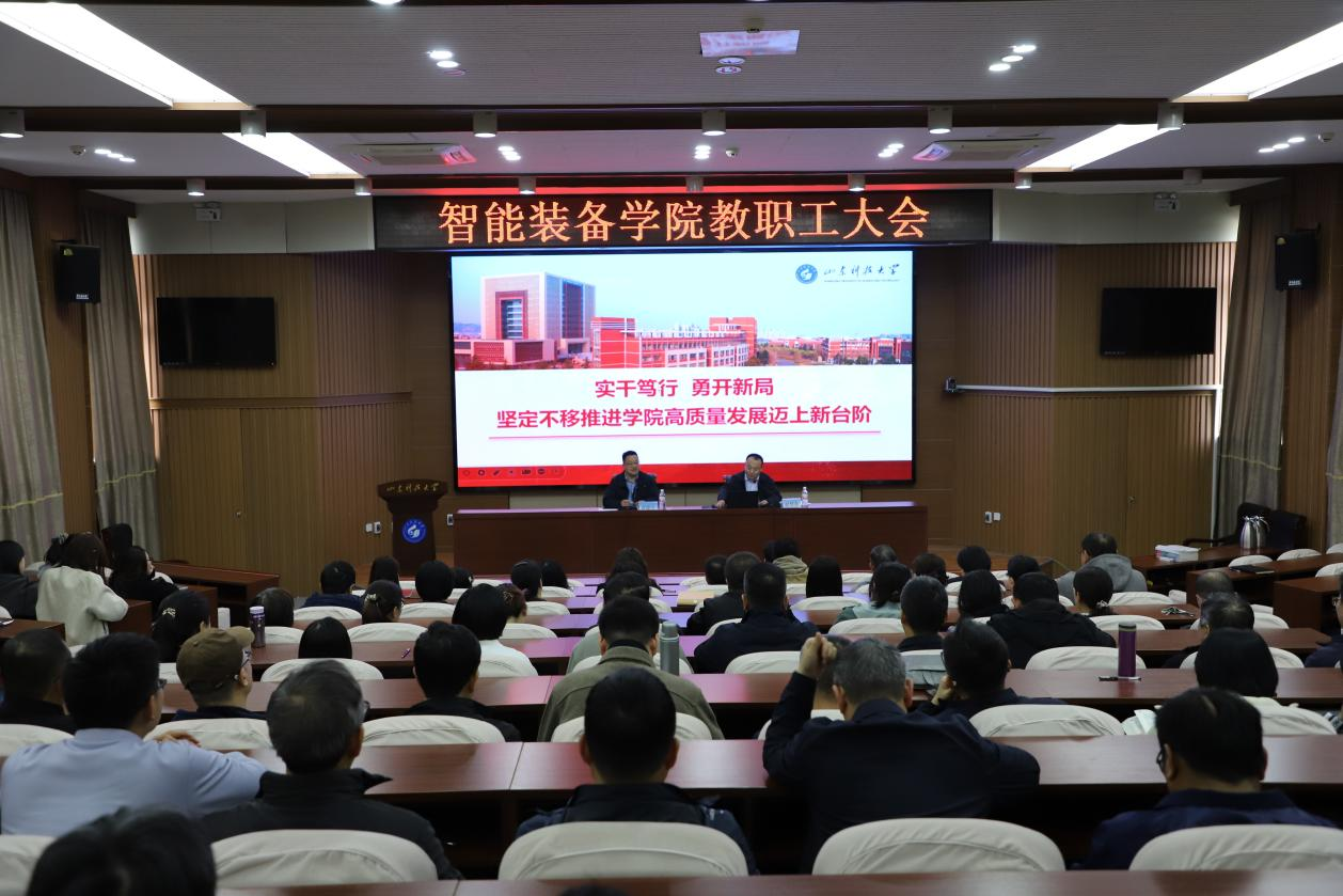 3月31日,智能装备学院在东校园1号楼报告厅召开全体教职工会议。学院党委书记黄德杰主持会议并讲话,院长赵慧奇及全体教职工参会。