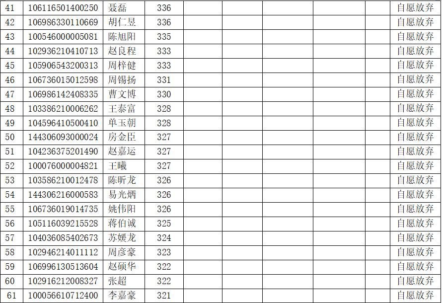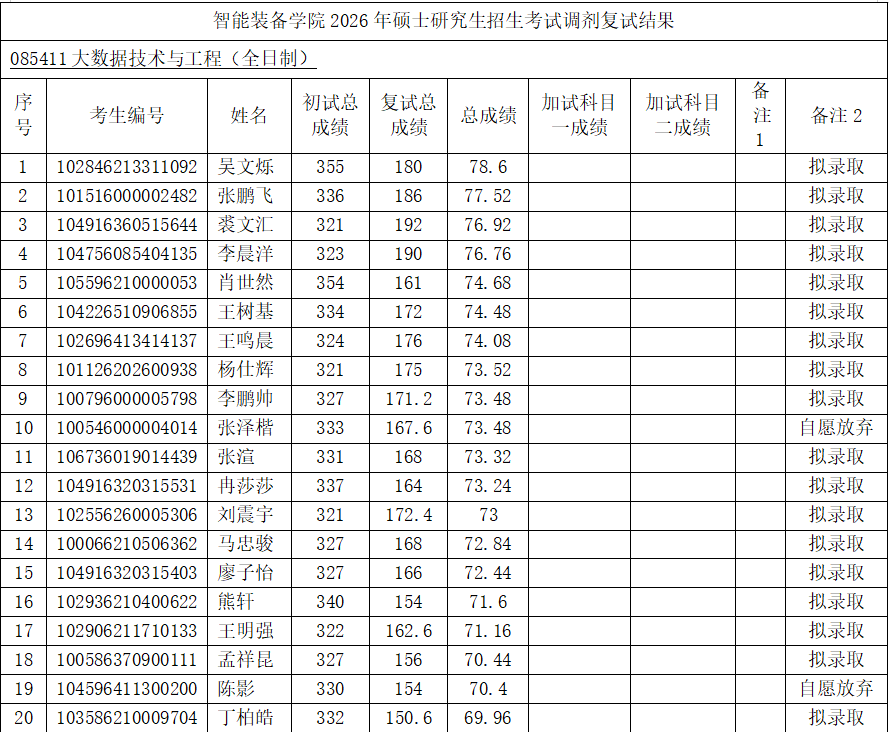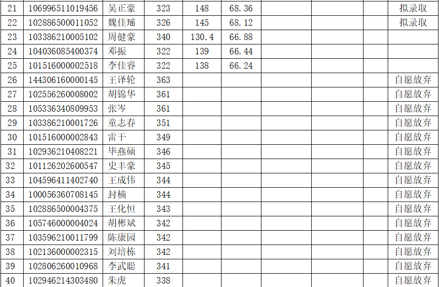 我院按照学校下达招生计划进行拟录取,若后期学校追加计划或公示名单中拟录取考生自愿放弃,将按照总成绩从高到低顺次进行待录取,并另行公示。最终拟录取名单由学校研究生院进行统一公示。