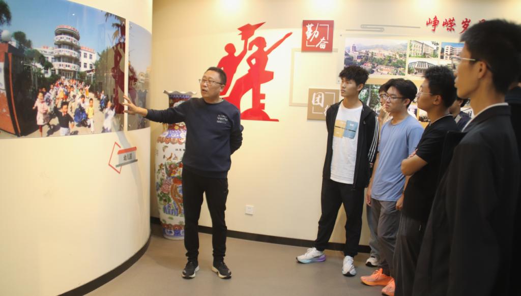 师生一行步入校园记忆室,参观学习以“触摸校史、感知底蕴”为主题,面对陈列的老照片、旧教具、荣誉证书等珍贵展品,王衍国逐一介绍其背后的历史渊源。从学校初创时期的艰难探索,到发展过程中的关键节点,再到如今取得的办学成就,一段段校史故事娓娓道来。新生们认真聆听、不时驻足观看,眼神中充满对学校历史的好奇与敬意。