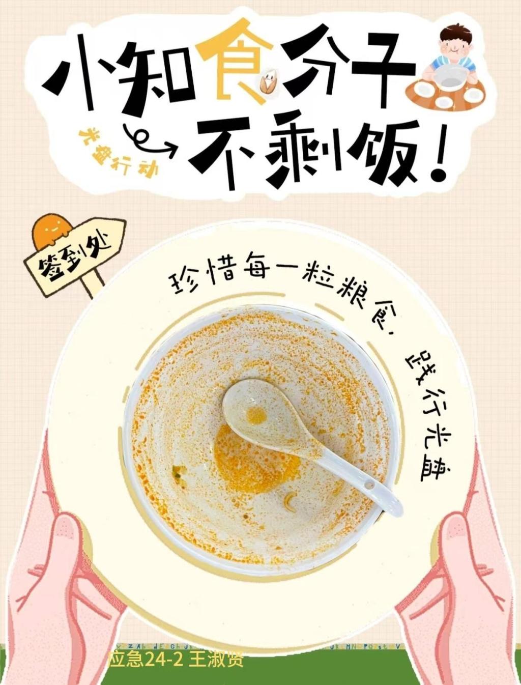 为弘扬勤俭节约的传统美德,近日,智能装备学院举办“盘中无余”光盘行动拍照打卡活动。